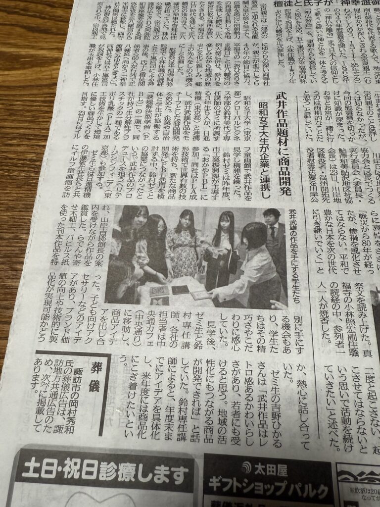 後期のゼミ活動では、私たちが童画館で実際に見て感じた武井武雄作品の魅力を多くの人に伝えられるような商品の提案・開発をしていきたいと思います。