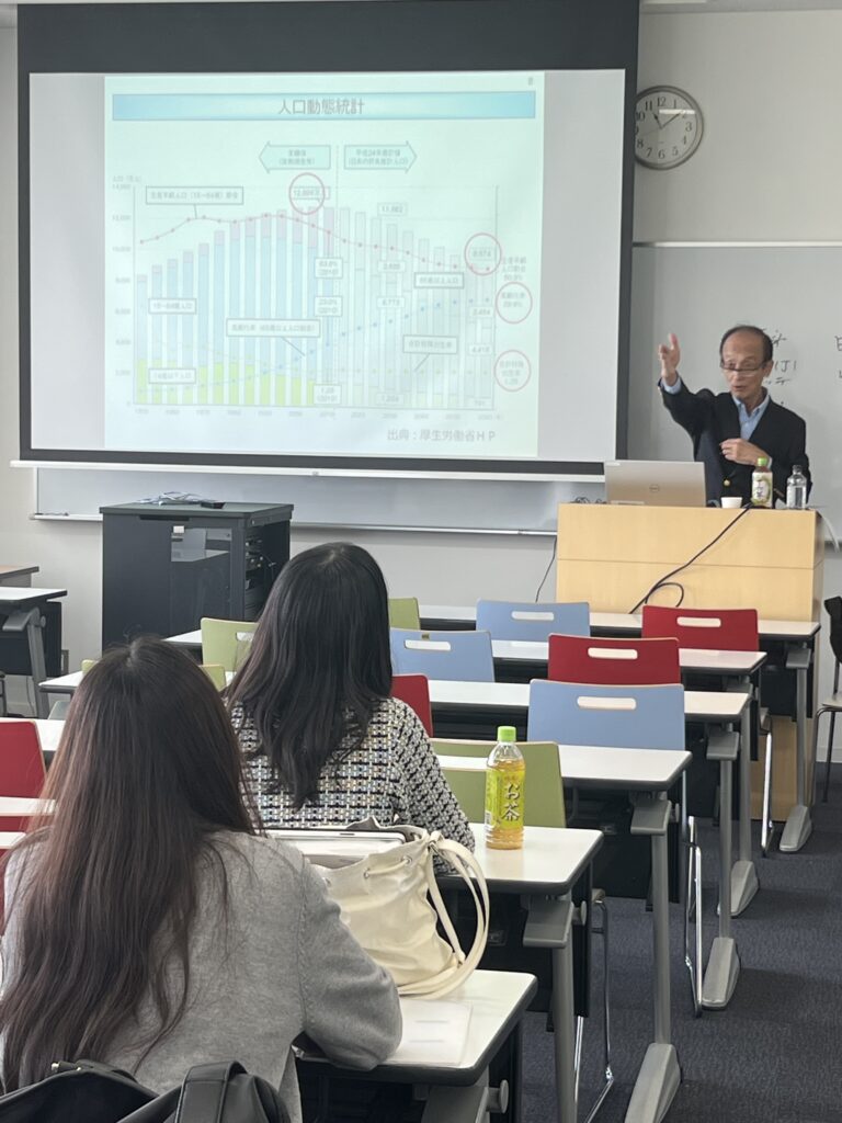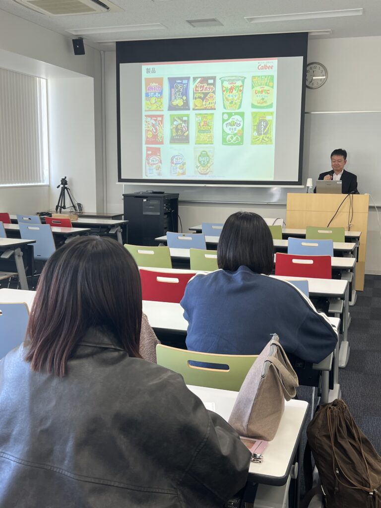 今回は食品業界です。ご講義いただいたのは、元アサヒグループHD株式会社取締役で、現昭和女子大学現代ビジネス研究所特別研究員の古田土俊男先生、カルビー株式会社研究開発本部本部長の柚木英明先生です。